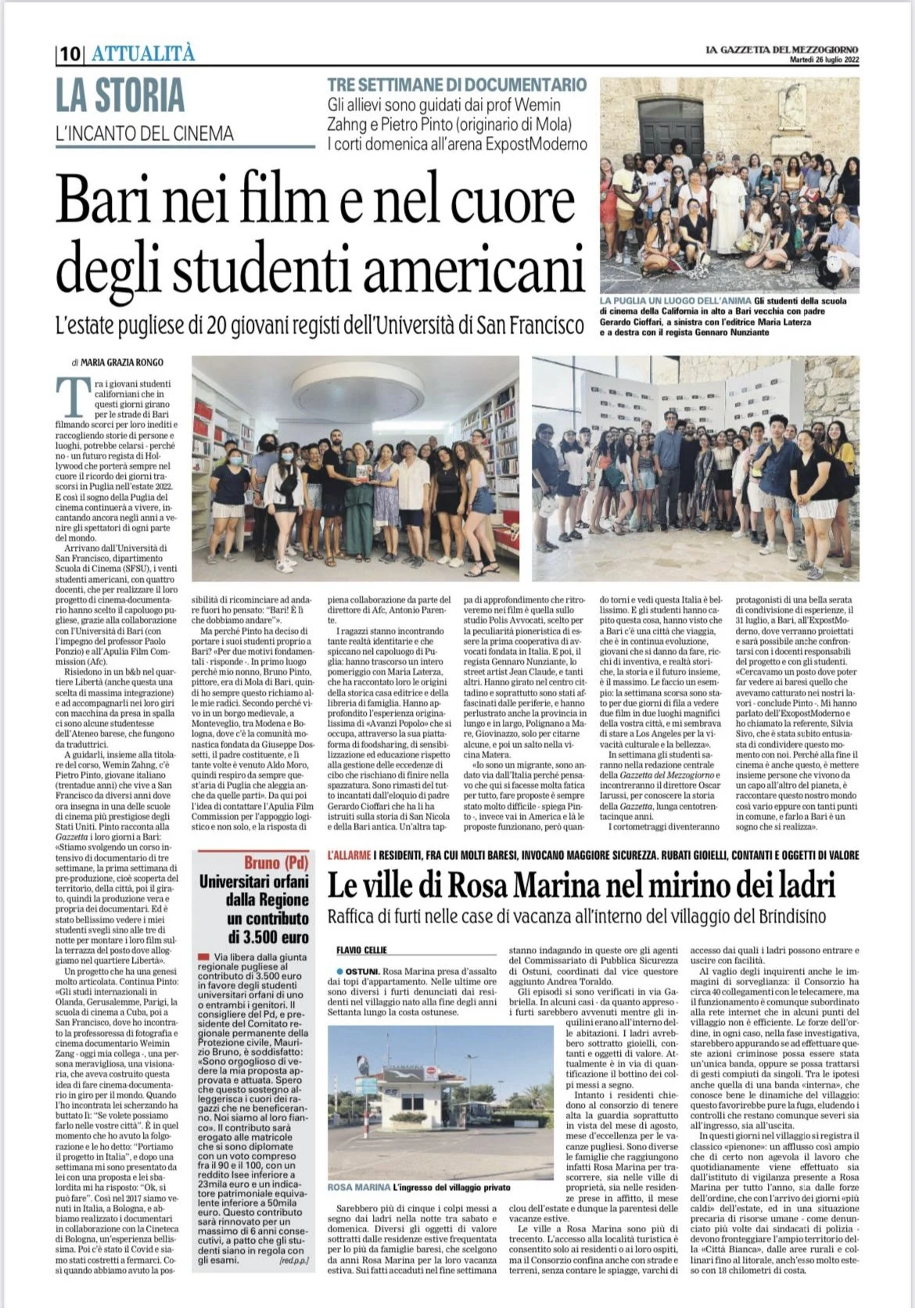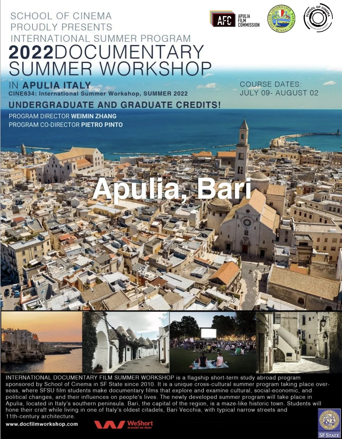 In 2022, Pietro created the SFSU Summer International Film Workshop in Bari (Italy). During the four-week intensive program, students created four short documentary films.